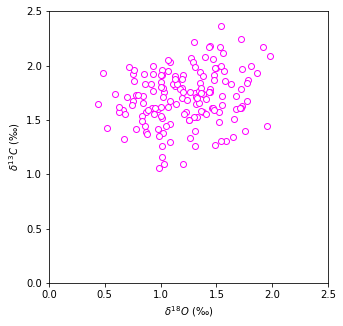 plt.ylabel("$\delta^{13}C$/$\delta^{18}O$ (‰)")